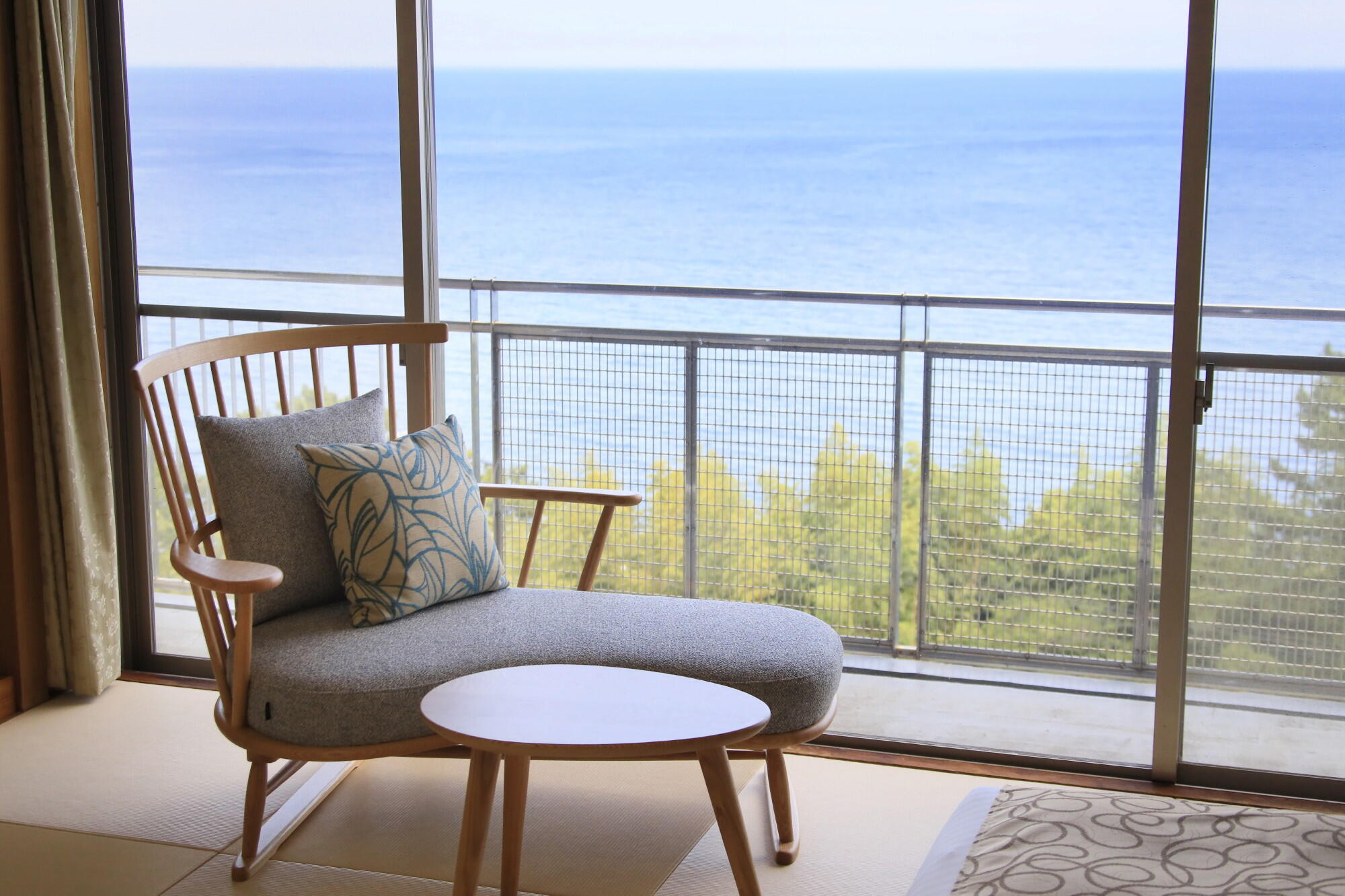 窓いっぱいの海と空を眺める 全客室オーシャンビュー