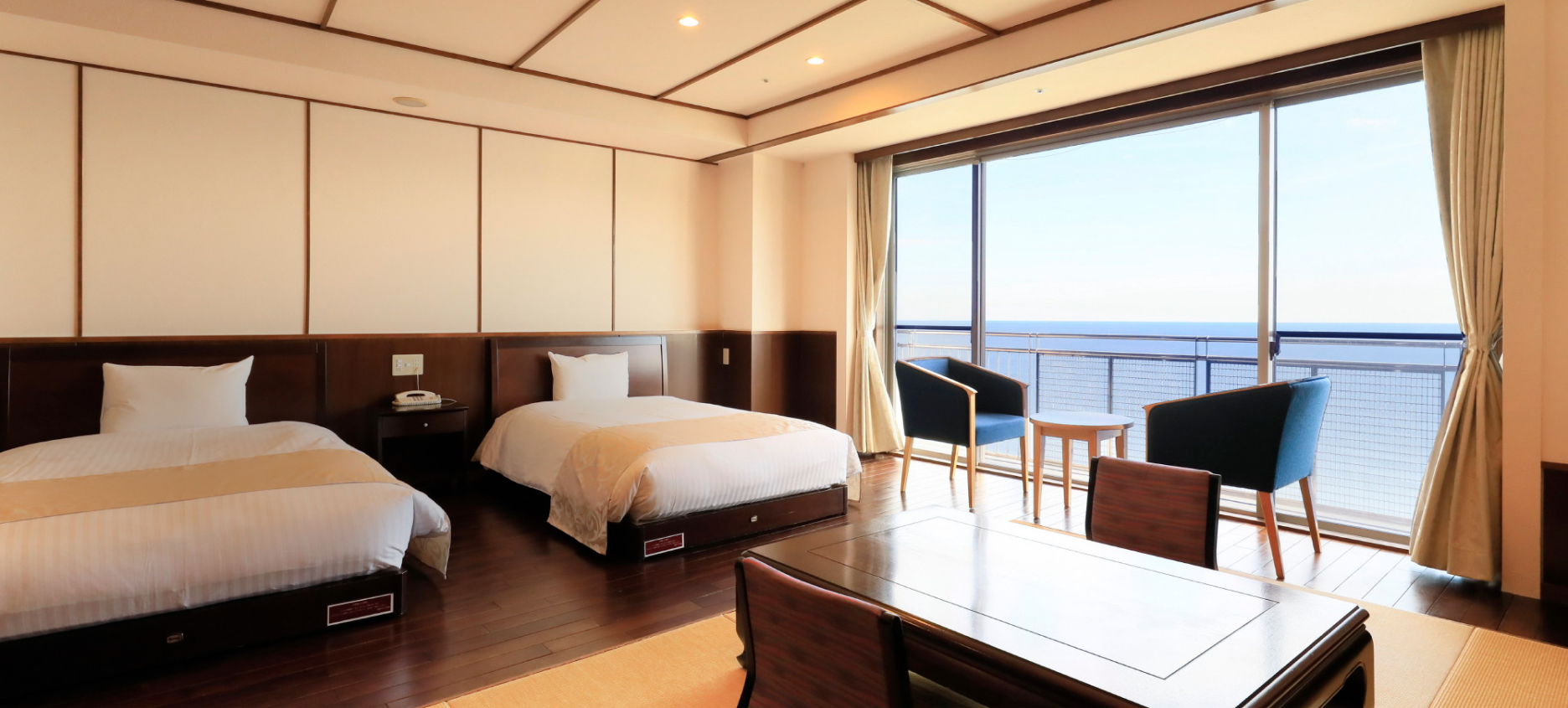 KKRホテル熱海は海を一望できる絶景温泉露天風呂に全室オーシャンビュー。熱海駅から徒歩7分で日帰り利用も可能。旬の和会席や人気の中国料理、お子様メニューも充実しています。